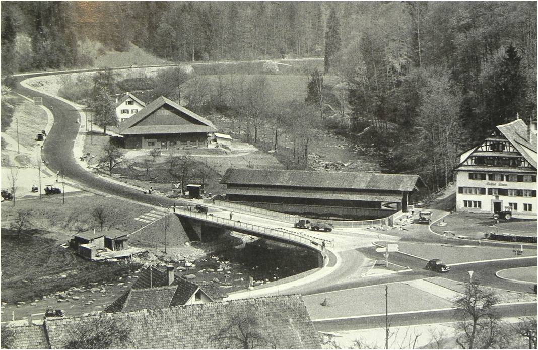 Beide Fotos aus: "Zur Erinnerung an die Brückeneinweihung an der Babenwag Sihlbrugg, 22. Mai 1960 / (Mitarb.: Albert Iten u.a.). - Zug : Kündig, 1960. - 11 Bl. ill. StAZG, Lesesaal E433, Notation 624