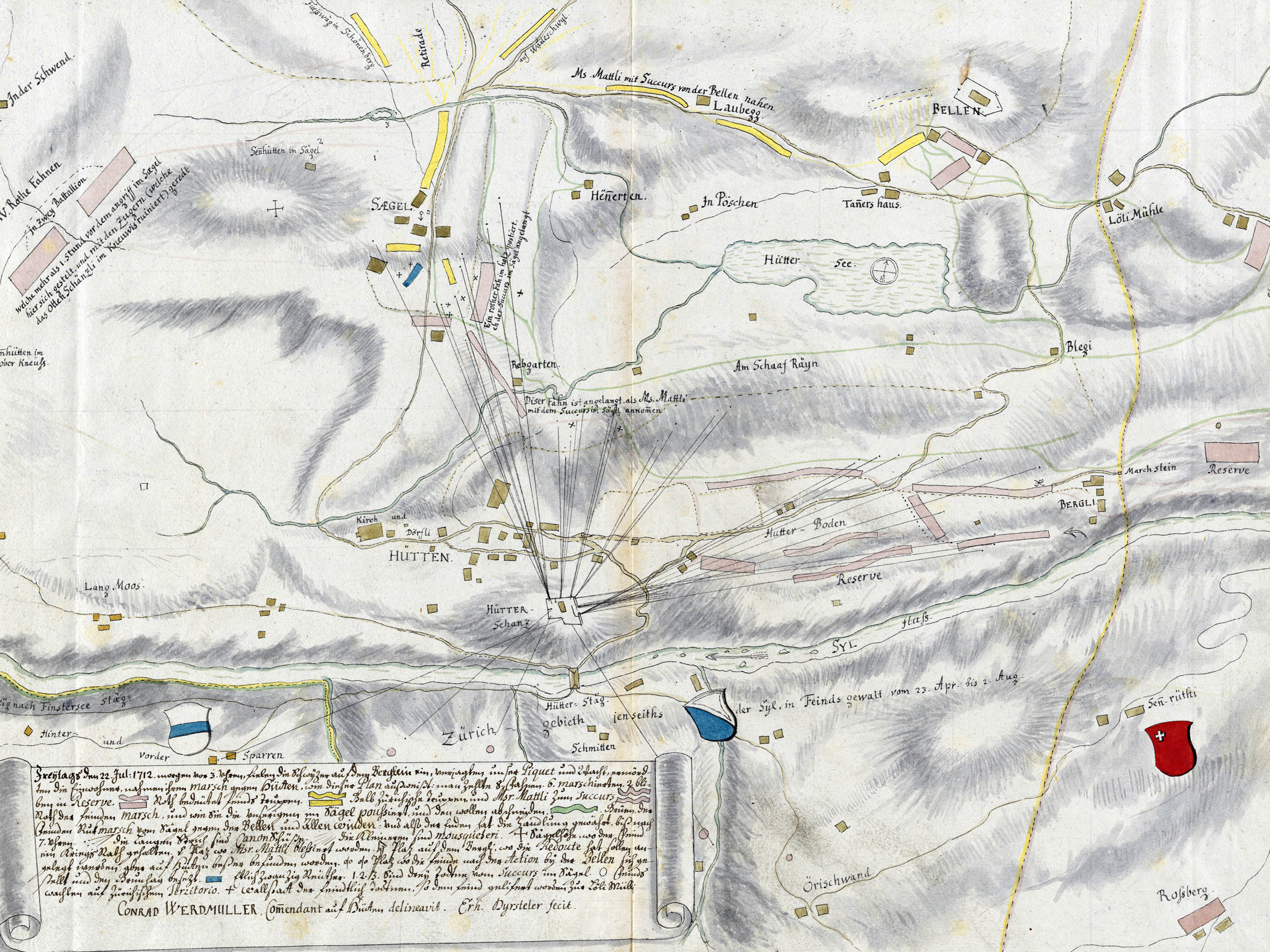 Mitte: Dieser Fahn ist angelangt als Major Mattli mit dem Succurs ankommen in dem Segel.